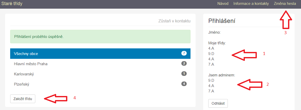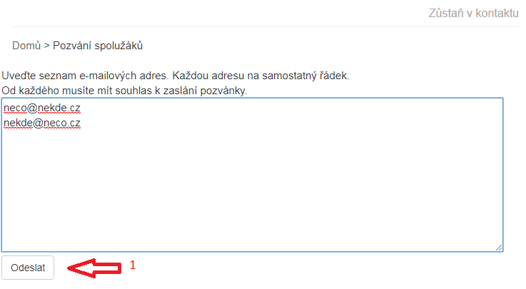 - Vytvořte třídu a pozvěte min. 15 spolužáků (tito se musí zaregistrovat) a napište přes kontaktní formulář