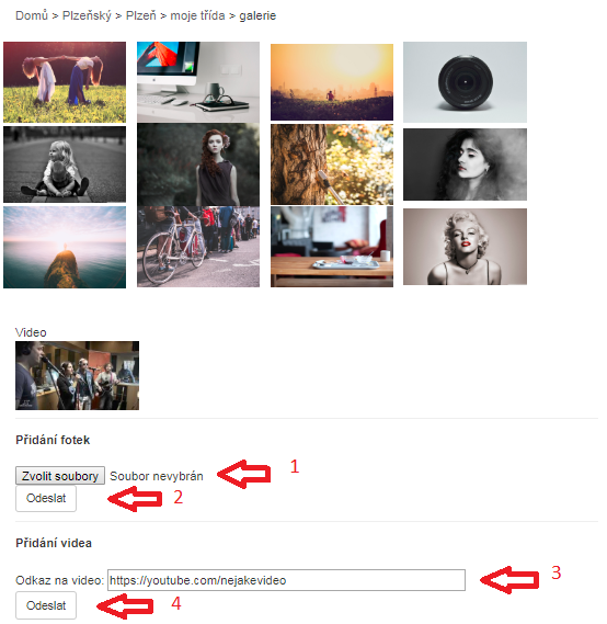 - Nejprve je třeba vybrat fotky, které chcete nahrát. Maximální počet na jedno nahrátí je 200 fotek. Fotky větší než 1024x768 jsou automaticky zmenšeny.