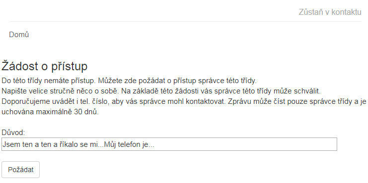 Ve třídě kde jste správcem můžete přidávat další spolužáky. Od těchto je třeba mít souhlas (nespamujte).